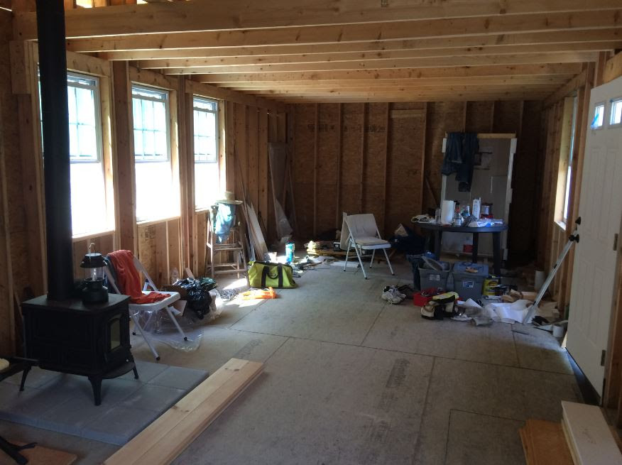 Here is a view of the interior looking toward the east side of the house. The kitchen will be in the left corner and the bathroom in the right corner.